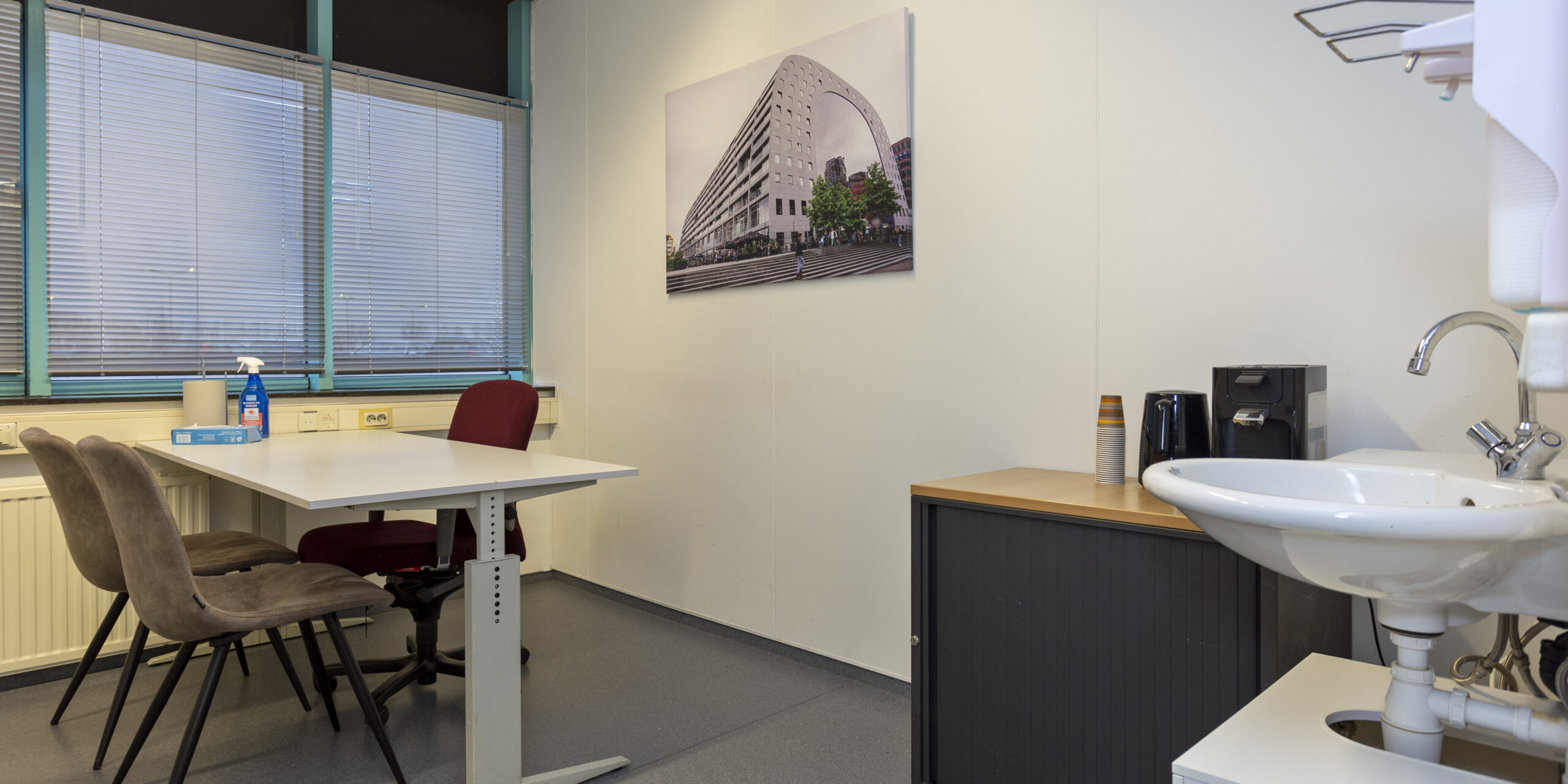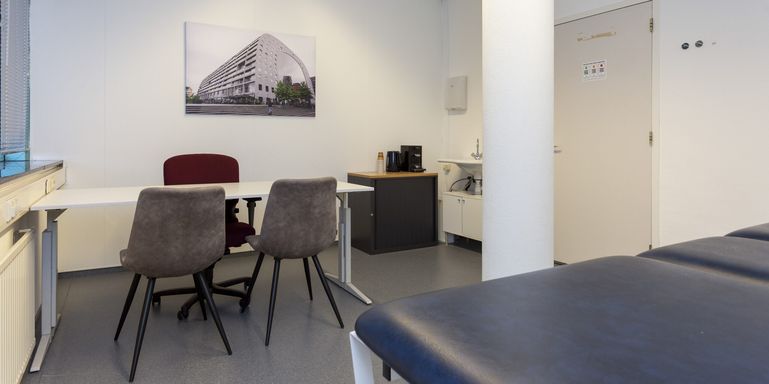 Onze Spreekkamers bieden altijd een inkijkvrije omgeving en ondergaan dagelijks professionele reiniging.