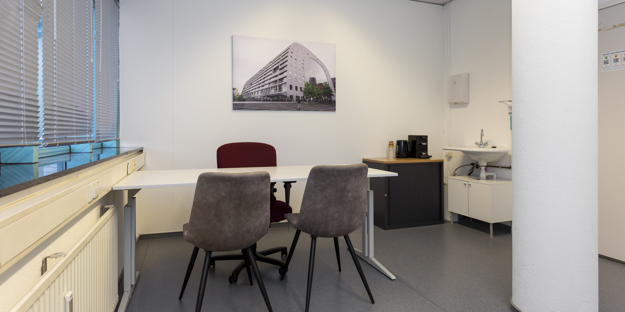 De Spreekkamer Wit is beschikbaar voor verhuur per uur, dagdeel of dag.